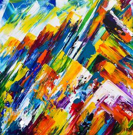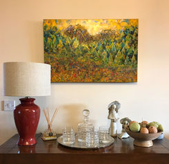 This collection brings together a variety of landscape paintings, from bold, abstract expressions to textured, sculptural works layered with natural materials. Many pieces feature techniques from my Golden Scenes collection - thick acrylics, carved surfaces, and even real dried flowers, while others flow more freely, using sweeping strokes and soft blending to evoke the rhythm of the wind and sky.